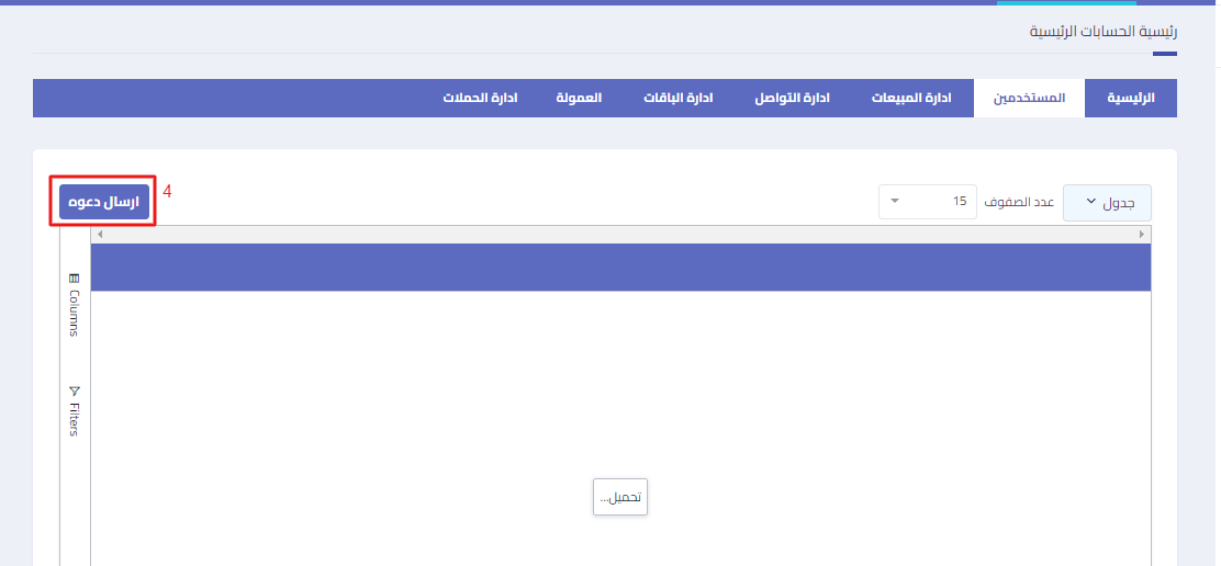 3- اختر (المستخدمين) من شريط الاختيارات، ثم (ارسال دعوة).