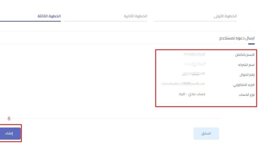 5- يمكنك مراجعة بيانات المستخدم الذي ستقوم بإضافاته، ثم اختر (إنشاء)، وبهذا تكون قد أرسلت الدعوة إلى الحساب.